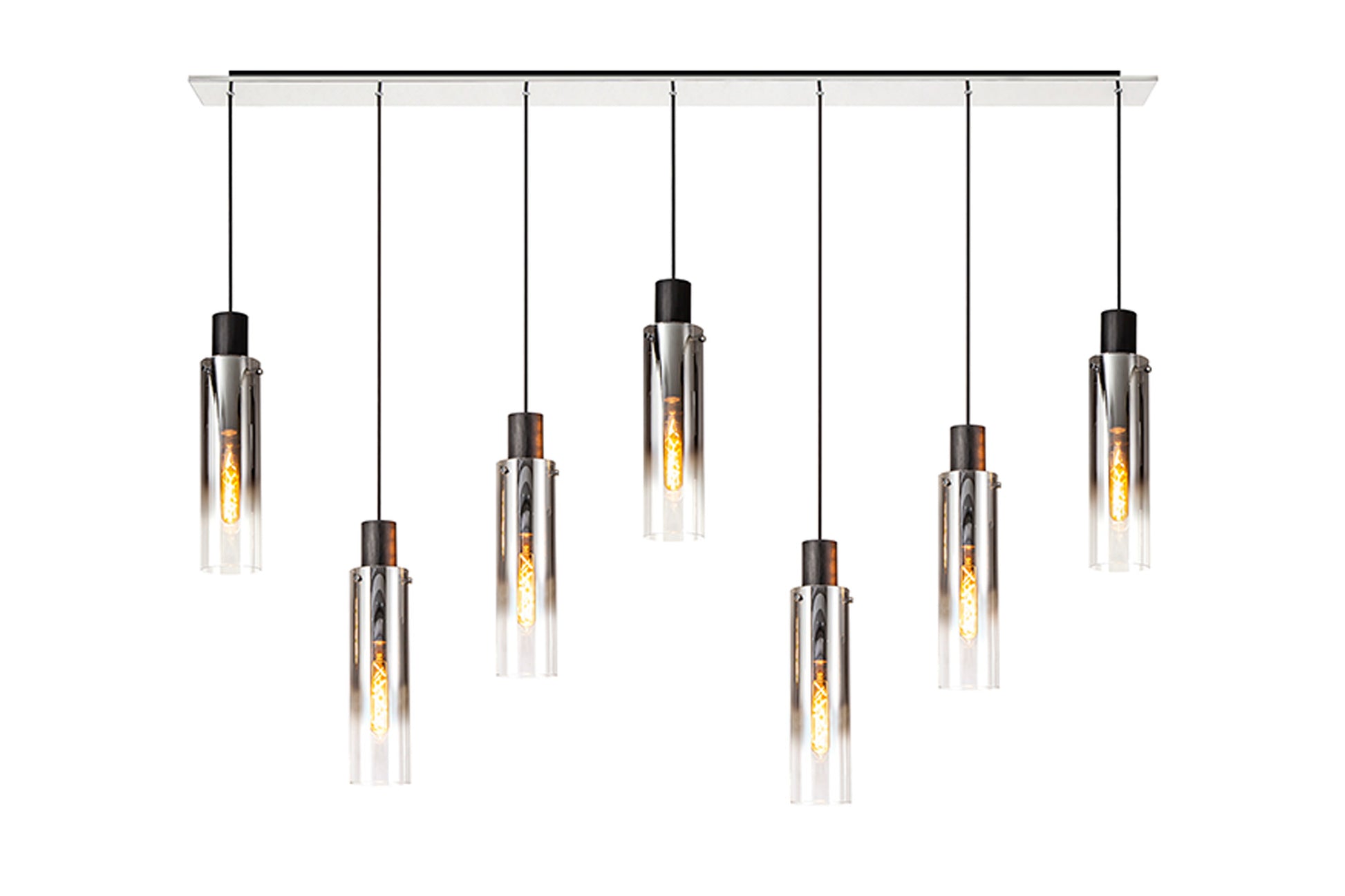 The Barlett 7 Light Bar Pendant has an intriguing ombré effect of faded black and smoke, by applying the finish to substantial glass cylinders which sit around the E27 lampholders. This feature has been used to manufacture a range of ceiling lights, pendants and a complementing wall and table lamp perfect for modern settings. Important - The LED used within this fitting is additional but essential to create the finished look.
