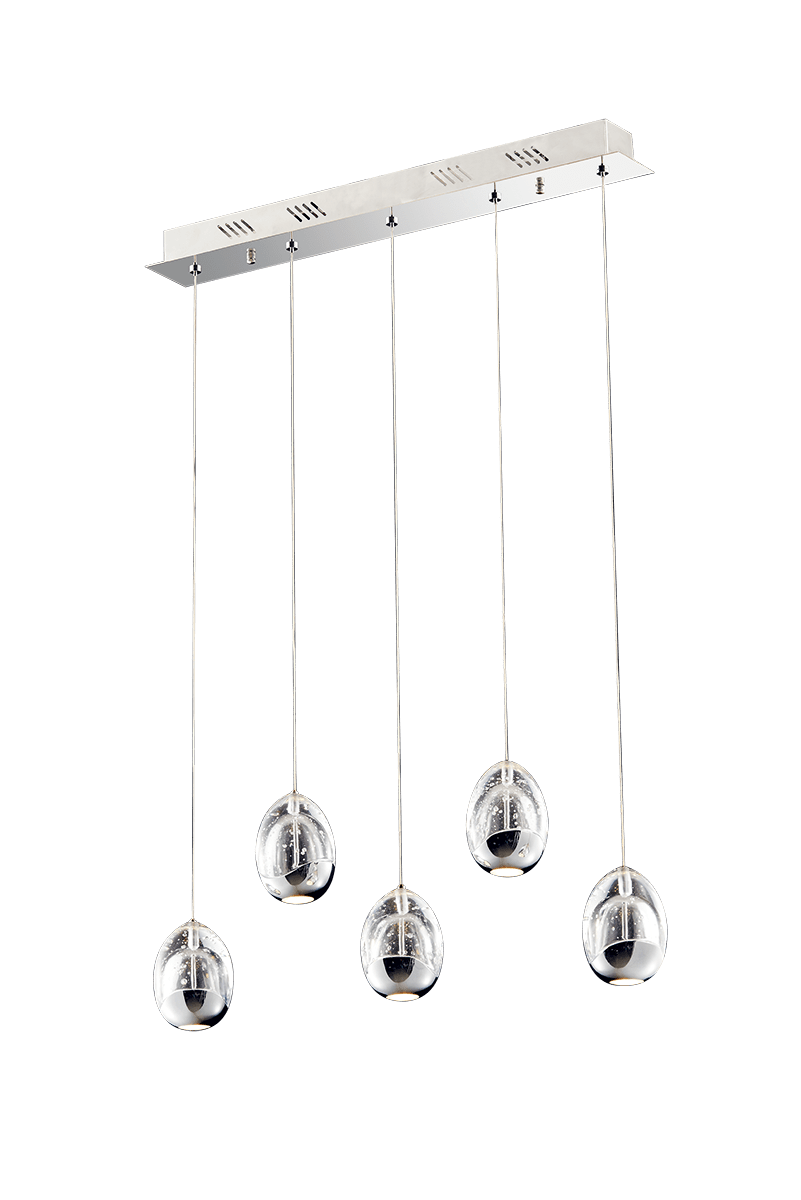 The Huckley lighting collection is a contemporary range complete with organic bubbles infused within pressed glass, dual light source and finished in chrome with clear or gold with champagne bubble glass. The collection is compromised of pendants, wall lights, floor and table lamps. The Huckley pendants have the ability to adjust each individual light vertically at any time, not just at the point of installation.