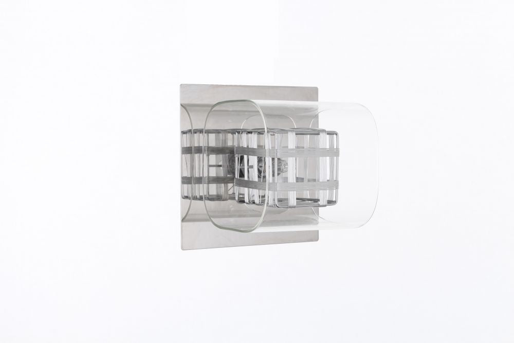 The Thornley Single Wall Light is from a full collection of fittings that offer a piece for most room sizes and spaces. A polished chrome frame holds a cuboid strung metal shade, this is then encased in a glass open shade. Nicely concealing the G9 lamp. Some pieces in the range are also available in gold.